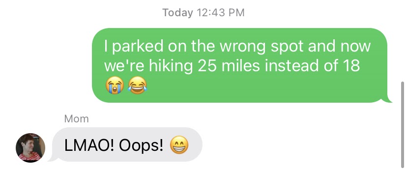 By the time we reached Dead Man's Hill overlook, seven miles in and up a steep climb, Karisma was fully awake. I asked her to take a look at the map to find our next turn while I used the restroom. When I came out she had some news... I had parked at the wrong spot, and we had added seven miles to our already long hike 🤣